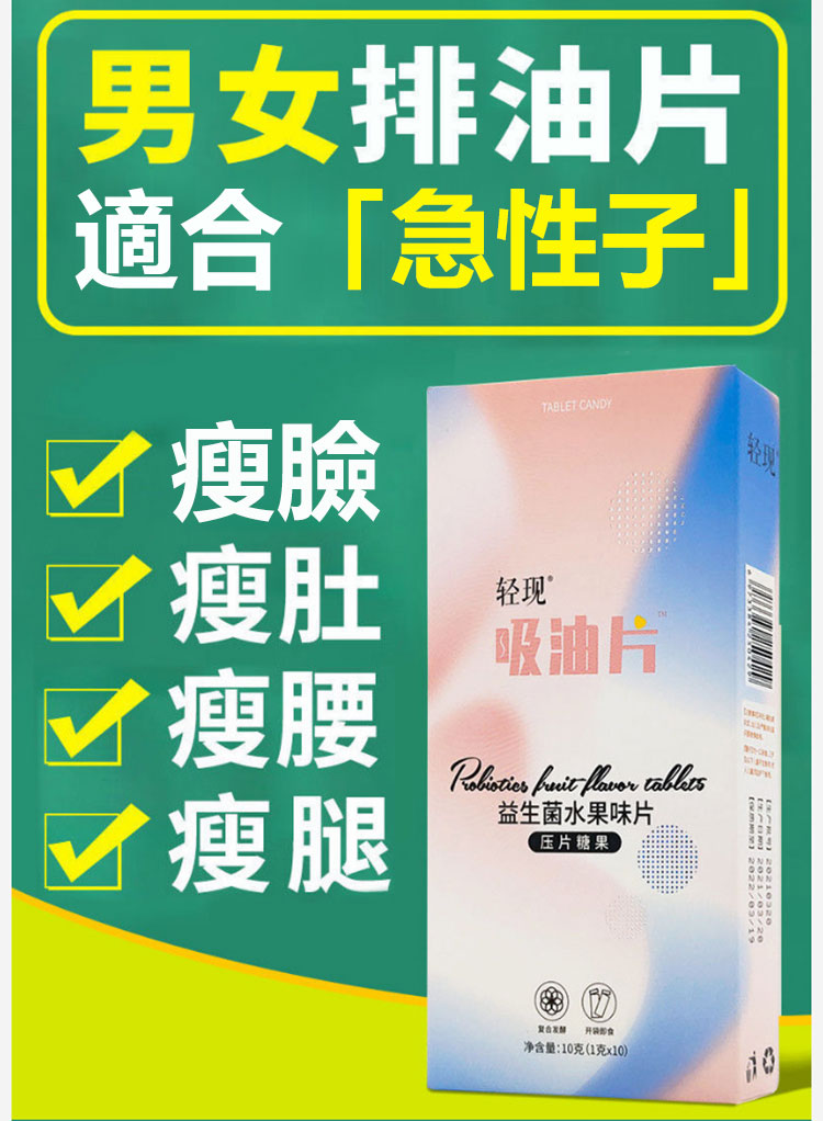 輕現吸油丸糖果是一款可以幫助排毒消脂排油減肥瘦肚子產品、酵素丸片。吸油丸的成分含有諸多的果蔬成分還有酵素粉,它可以促進腸胃蠕動,加速脂肪的排毒消脂排油丸有效的促進消化,能夠將脂肪徹底的分解,同時分解油脂的同時還能夠補充營養。